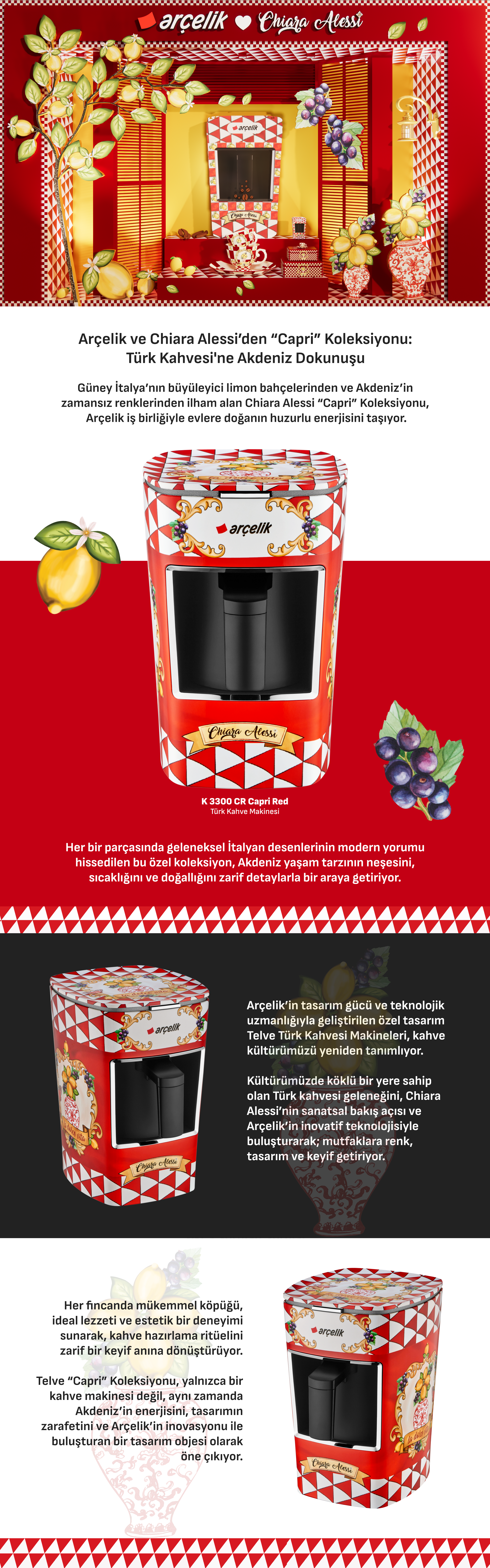 ARÇELİK Chiara Alessi K 3300 CR Capri Red Türk Kahve Makinesi